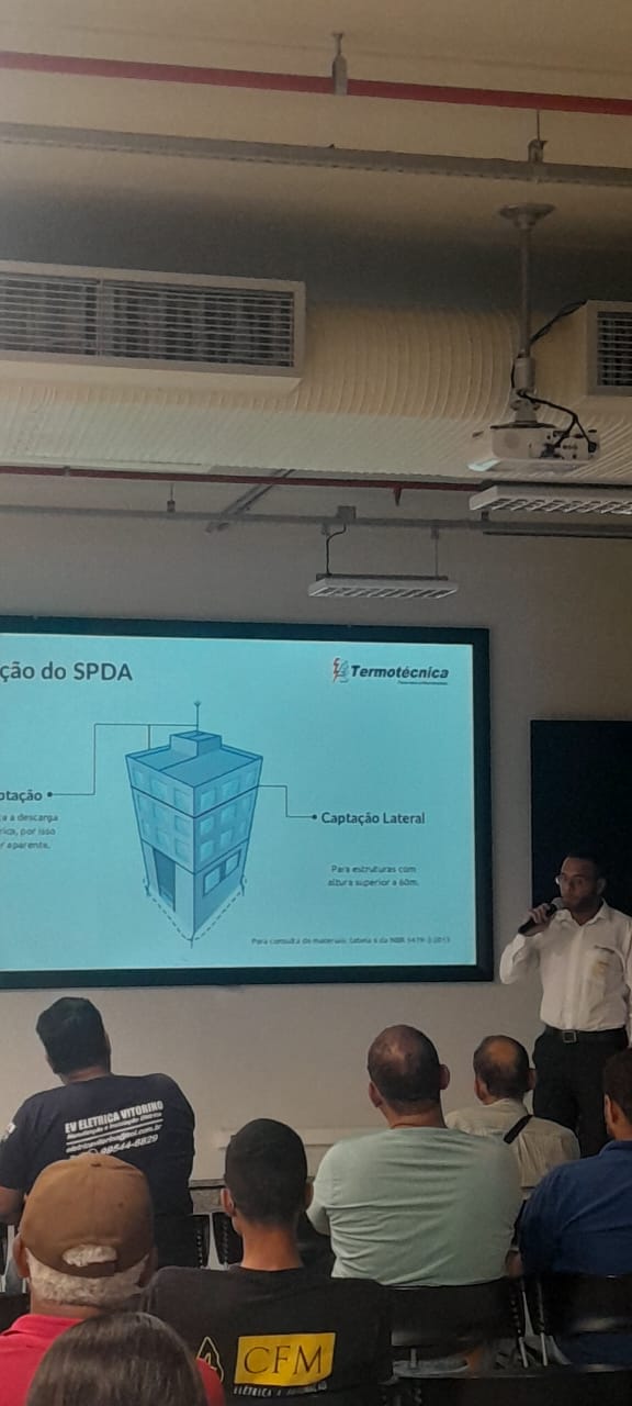A Termotécnica Para-Raios com seu estande e uma palestra muito clara sobre a PDA – Proteção contra Descargas Atmosféricas, assunto que merece muita atenção devido à grande incidência de raios no Brasil.