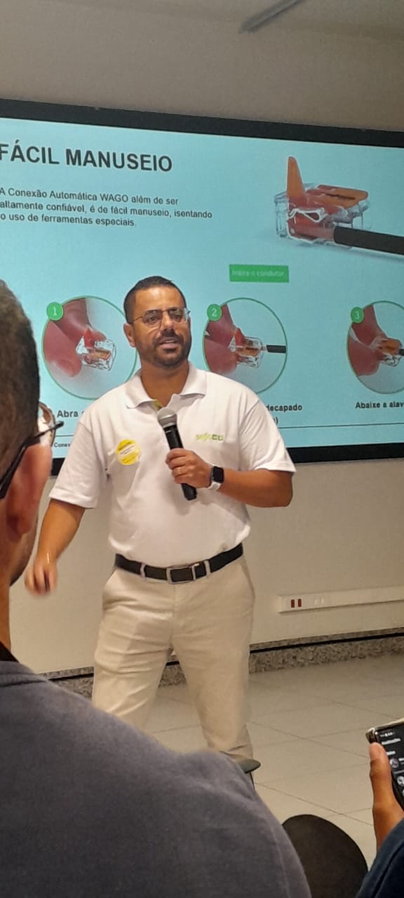 Neste último evento, estiveram conosco as empresas que sempre acreditaram em nosso projeto, a ABB, com seus disjuntores que são referência no mundo; a Cobrecom, com os cabos mais que especiais para cada tipo de aplicação; a Finder, apresentando sobre automação e a Wago, com os seus tradicionais conectores. Além da Qualifio e Sindicel, com sua van que é um laboratório e durante o intervalo, apresentou as diferenças em utilizar fios e cabos fora de norma.