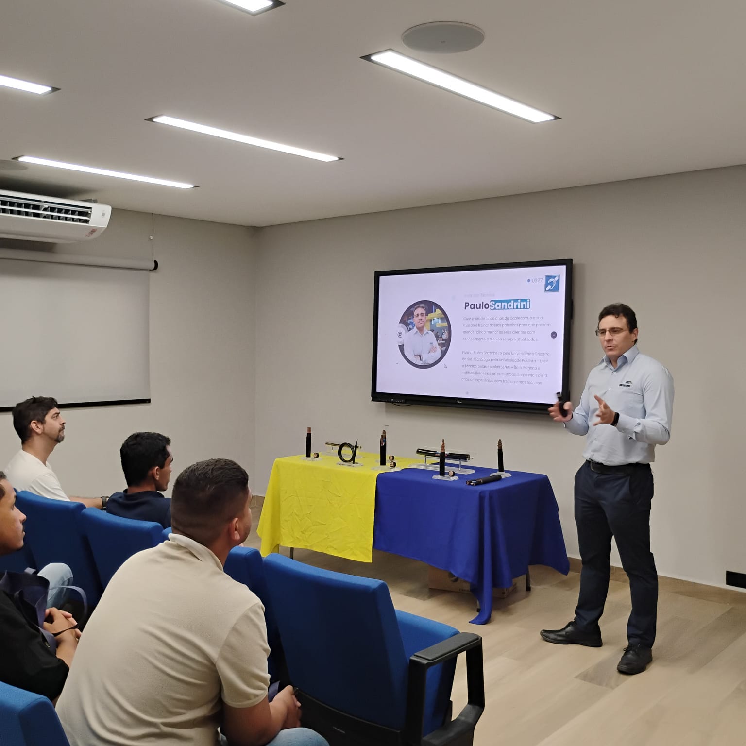 Acompanhados pelo diretor-executivo da Abracopel, Edson Martinho e o diretor-executivo da Abrapeel – Associação Brasileira de Profissionais Eletricistas e Eletrônicos, Orestes Rodrigues Junior, eles foram recebidos pelo instrutor técnico da Cobrecom, Paulo Sandrini Pozetti e pelo departamento de marketing, Gabriel Prado, seguindo direto para o restaurante, onde foi oferecido um almoço.